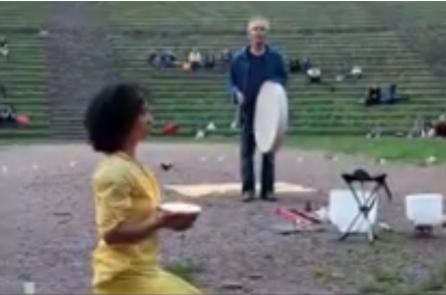 In Stille und Meditation, mit Gesang, Tönen, Trommeln