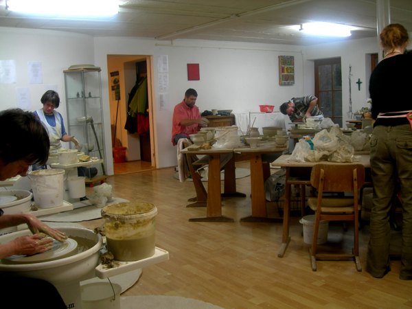 Hier sind ein paar Fotos vom letzten Kurs "Drehen an der Töpferscheibe", bei denen man die Ergebnisse bestaunen kann und unten gibt es ein Video vom Entstehen eines Gefäßes, das ich auf der Scheibe drehe!